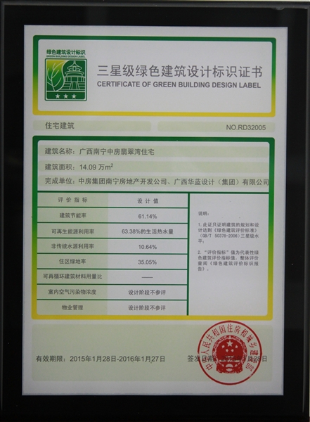 • 翡翠灣榮獲三星級綠色建筑設(shè)計標(biāo)識證書