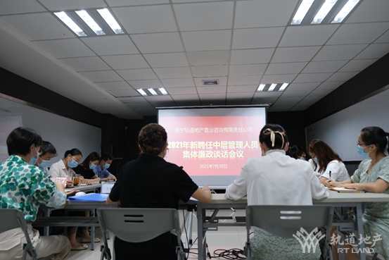 為深入貫徹落實(shí)全面從嚴(yán)治黨要求,提高領(lǐng)導(dǎo)干部廉潔自律意識(shí),7月30日上午,軌道地產(chǎn)咨詢(xún)公司黨支部書(shū)記、董事長(zhǎng)劉燕對(duì)新提拔聘任的6名中層領(lǐng)導(dǎo)干部進(jìn)行集體廉政談話,會(huì)議由軌道地產(chǎn)咨詢(xún)公司總經(jīng)理鄧斯敏主持。