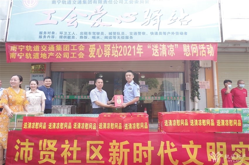 高溫慰問送清涼 社會(huì)責(zé)任勇?lián)?dāng)--南寧軌道交通集團(tuán)工會(huì)、南寧軌道地產(chǎn)集團(tuán)工會(huì)開展送清涼慰問活動(dòng)