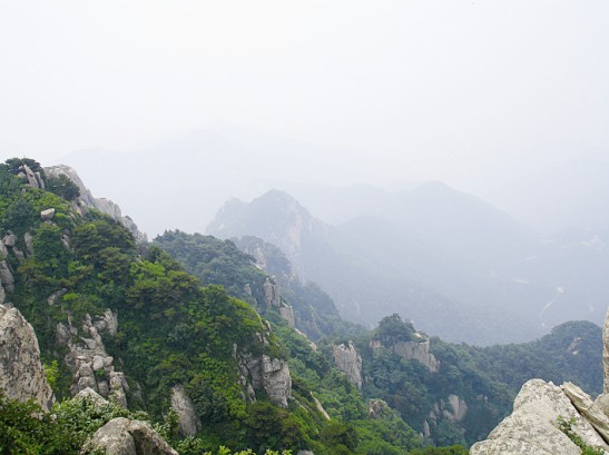 我們的行程很快,在下纜車(chē)后迅速到達(dá)南天門(mén)開(kāi)始向玉皇頂進(jìn)發(fā),然后終于來(lái)到了向往已久的泰山摩崖石刻處。作為泰山的標(biāo)記之一,站在《紀(jì)泰山銘》的刻石下面,仰望這部唐玄宗的"封"山之作,頓時(shí)覺(jué)得自己十分渺小,泰山獨(dú)有的莊嚴(yán)神圣和巍峨磅礴撲面而來(lái),讓我完全拜服于泰山的獨(dú)特魅力之中。隨后我們登上了泰山之巔--玉皇頂。在玉皇頂回身俯視天地,終于在課本之外親身體會(huì)感受到杜甫"會(huì)當(dāng)凌絕頂,一覽眾山小"這句千古絕唱的韻妙之處,也真切的領(lǐng)會(huì)到"登泰山而小天下"的無(wú)與倫比的雄偉霸氣所在。
